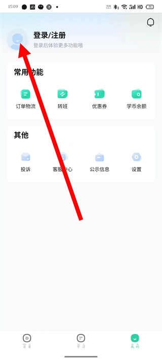 2、在我的页面,点击登录注册头像,进入登录页面。