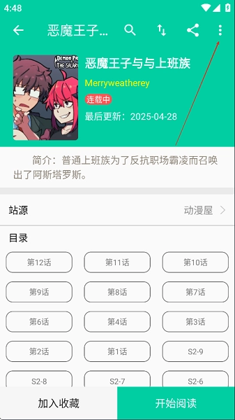 1. 开启软件,寻找到自己心仪的漫画,接着点击右上角的符号。