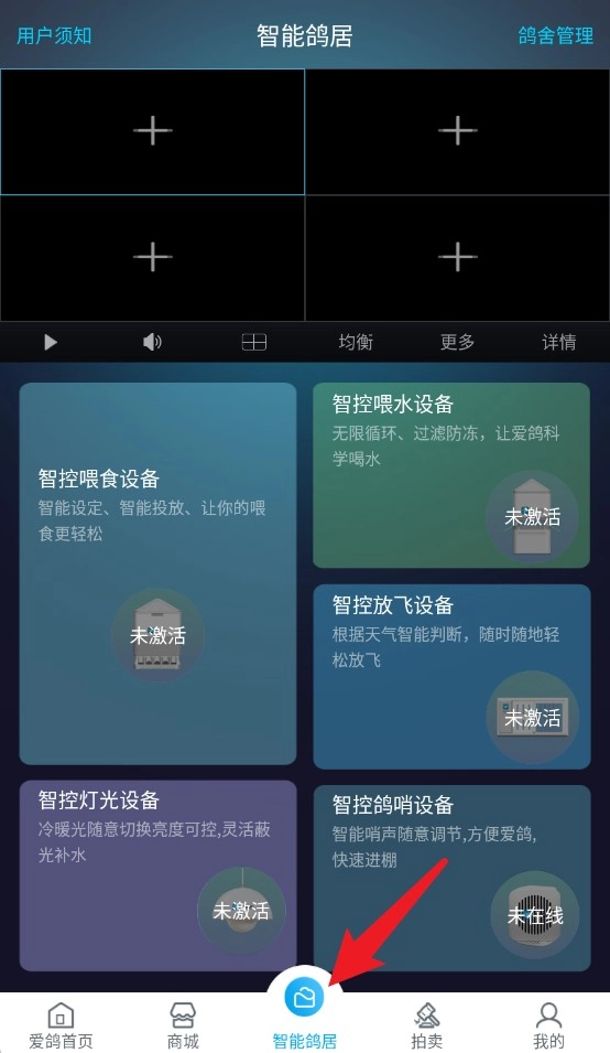 3、智能鸽居能够对喂食、供水、照明以及放飞设备进行远程控制,全方位达成鸽舍智能化的自动管理。