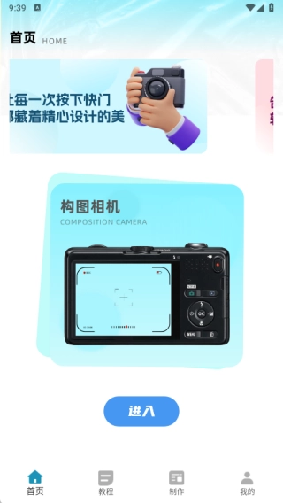 1. 首页设有构图相机的入口,点击该入口就能开启体验。