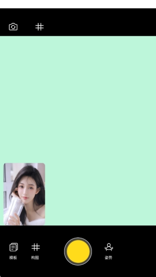 2、进入到构图相机中有模板和构图功能,开启后就可以进行拍摄;