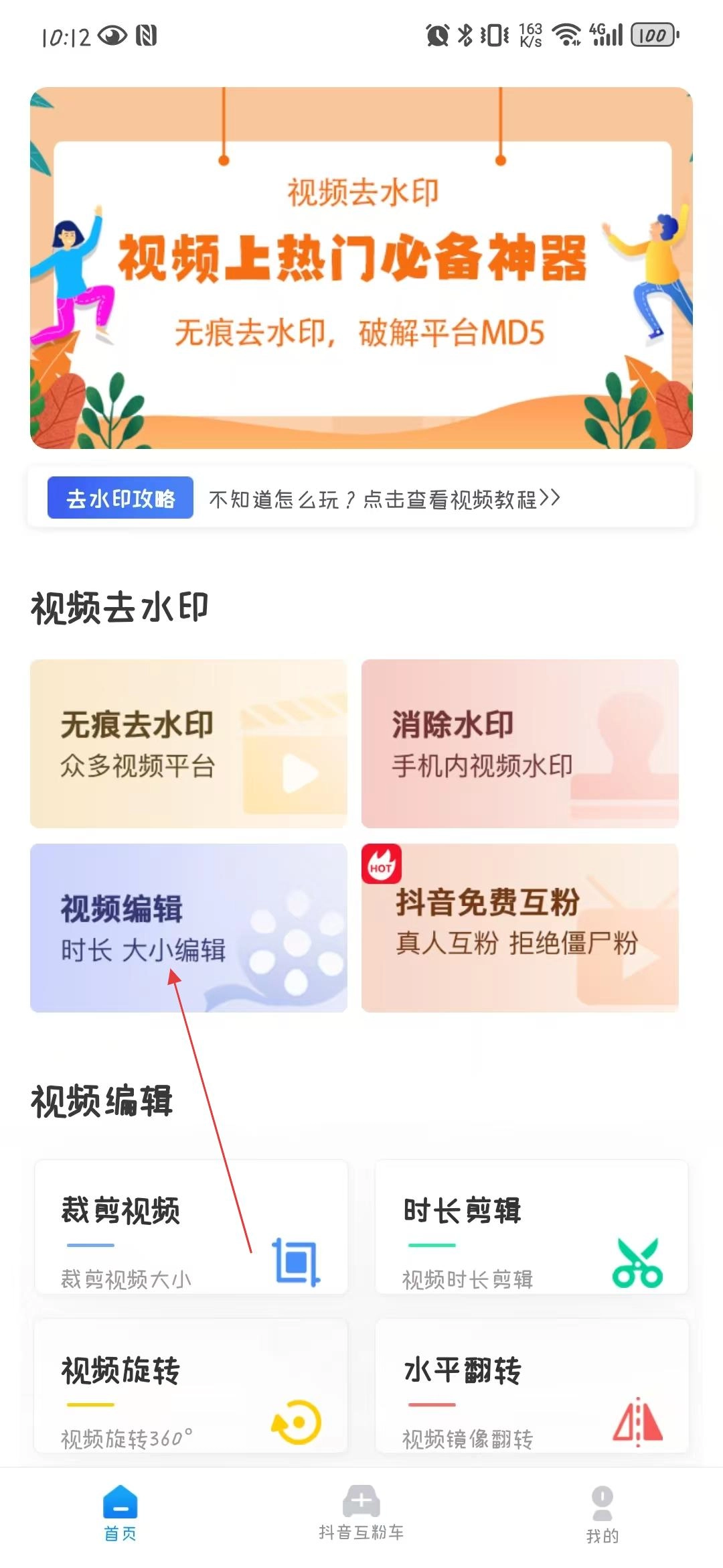 1. 在软件的首页位置,点击【视频编辑】选项,随即能够进入到视频选择界面。