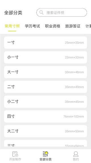 1. 挑选制作证件照所需的尺寸与类型。