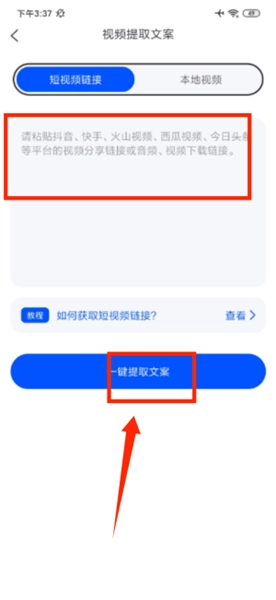 3、粘贴视频链接,接着点击一键提取文案,即可完成内容提取。