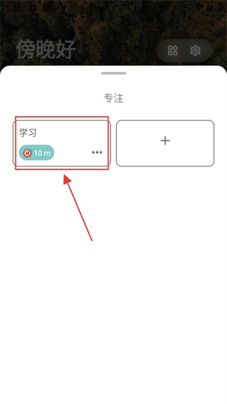 4、创建完成后,专注页面将呈现已创建的专注任务,例如【学习-10m】,点击该任务就能开启专注。