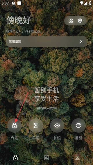 1. 于首页点击【专注】,随即进入专注页面。