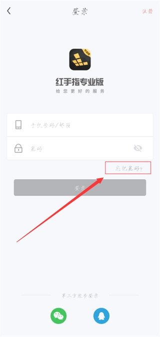 二、红手指专业版安卓账号密码找回指引