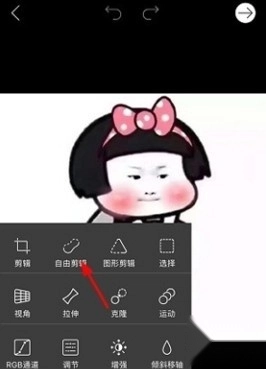 1. 第一步,打开相关应用或界面,挑选好照片,接着点击【工具】选项,随后在弹出的功能列表中选择【自由编辑】。