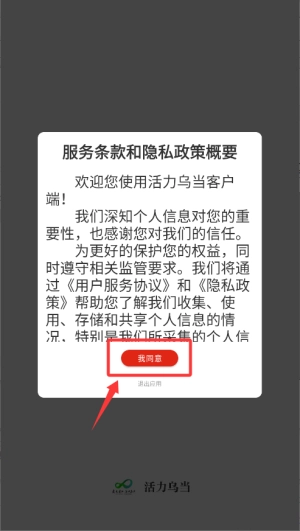 1、阅读并确认服务条款与隐私政策后,点击“我同意”进入应用主界面。