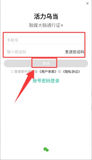 2、在登录页面输入手机号并获取短信验证码,点击“登录”完成验证。