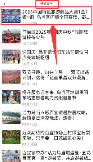 3、返回应用首页后,点击“畅游乌当”栏目进入本地旅游资讯列表。