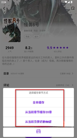 3、根据您的需求,选择相应的章节缓存选项并确认,即可开始。