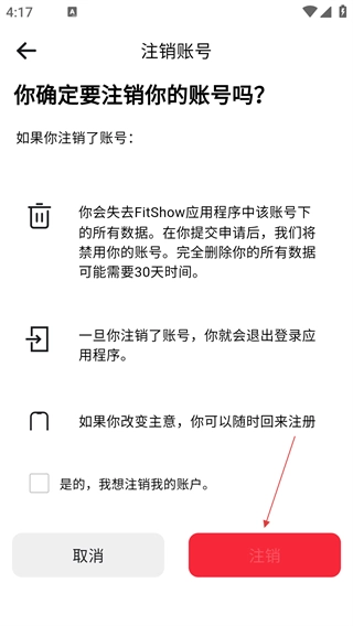 4、于注销账号页面勾选同意,接着点击【注销】按钮,即可完成账号注销。