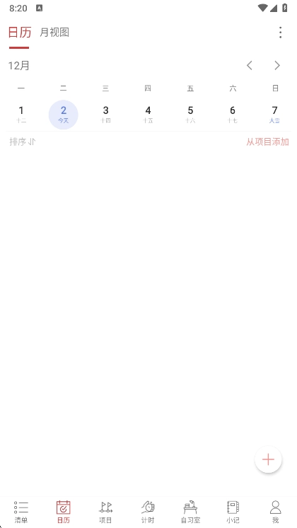 2、进入日历界面后,能看到这里的视图已按日期划分,也可以切换成月视图来规划每月的日程安排。