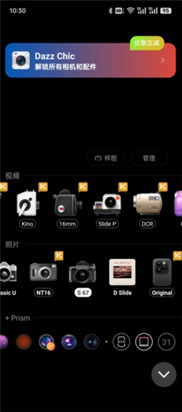 Dazz Chic是一款复古胶片摄影应用,专为钟情胶片质感的用户打造,以拟物化胶片相机的设计为核心特色。它高度还原了经典胶卷的色彩影调、颗粒质感与操作细节,比如复古取景框、胶卷换卷音效等,能让用户沉浸式体验胶片拍摄的独特魅力。软件数十种精选滤镜,风格跨度从低饱和日系延伸至浓郁港风,满足多元创作需求。