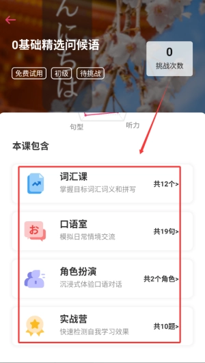 1、可提供的题型丰富多样,数量多达13种,像听音辨意、听音写词、假名选意、听音打词、假名组合等都包含在内。