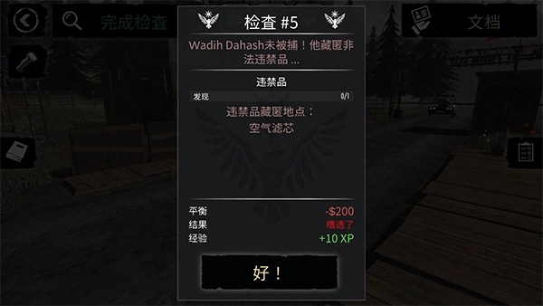 6、如果没有检查到违禁品,会被扣除经验值和金钱