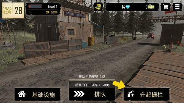 1. 开启游戏,轻点右下角的“升起栅栏”选项,让小汽车进入。