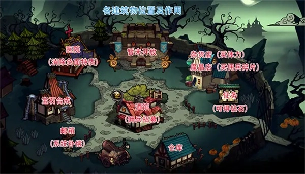答:0级解锁五星任务公告牌、仓库、邮箱;1级解锁酒馆、 商店;5级解锁符文(宝石)和医院;