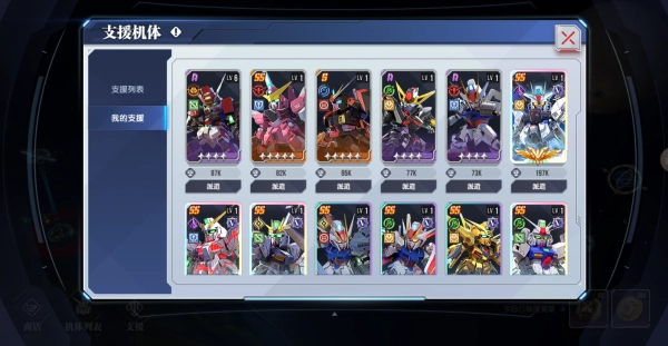 合理利用每天3次支援机体出战。尽量安排到最后几关使用支援机体,填补后期自己机体的战损。