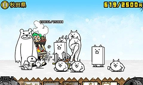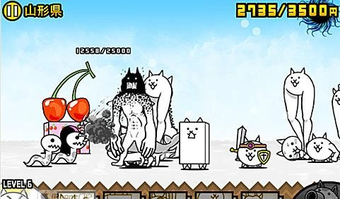 敌人的城堡终于突破2W到达25000了,这一关小编建议尽量把所有兵种全部升为最高级,特别是巨神喵,巨神喵升级为喵大帅后,不仅能抗而且还很能打,基础兵种的意义现在变成拖延时间且累计资金,这一关的敌人还是老对手,从喵颈鹿开始出兵才有可能获胜,喵大帅出兵2-3只就够了,其他的交给喵UFO和喵龙以及喵鲸。