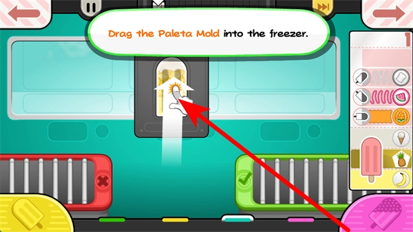 2、制作准备,首先要将冰棒模具拖入冷冻设备,完成冷冻环节,这是制作冰棒的基础步骤,为后续添加原料等操作做好准备,确保冰棒能顺利成型。