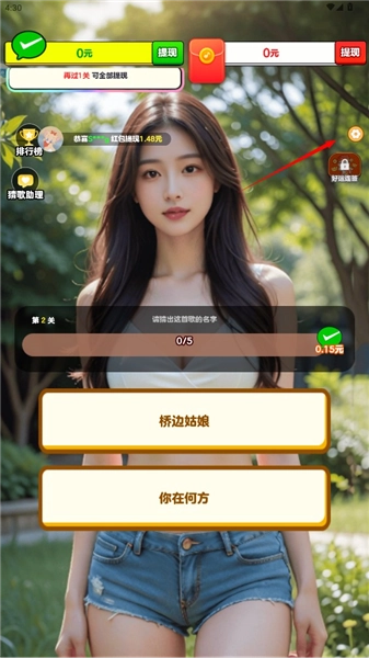 中华小曲库红包版,这是一款超有趣的休闲闯关类手机猜歌游戏。游戏中融入了海量风格各异的音乐资源,热门金曲也应有尽有。玩家将通过听歌猜歌的独特方式,尽情欣赏各种动听悦耳的音乐曲目。同时,游戏精心设置了许多不同难度的关卡,玩家需要认真倾听每首歌曲特定的秒钟数,然后在选项中做出最正确的答案,如此才能收获高分,成功通关。感兴趣的玩家,快来本站体验一番吧!