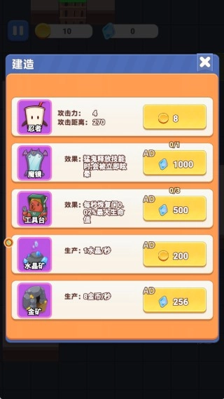 3、合理的在房间地板上布置各种防御塔,不断的积累金币,还可以去商店里来购买道具。
