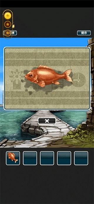 3、能够瞧见最右侧有个柜子,依据最上方鱼骨的上下方位,打开柜子,获取一个钓鱼竿。