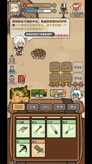 需探索荒野各处收集食物等必要物资,不同区域的资源分布各有差异,收集过程需结合环境判断与探索技巧,为生存提供基础保障,充满发现与积累的乐趣。