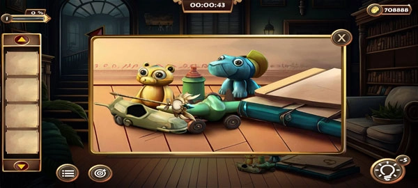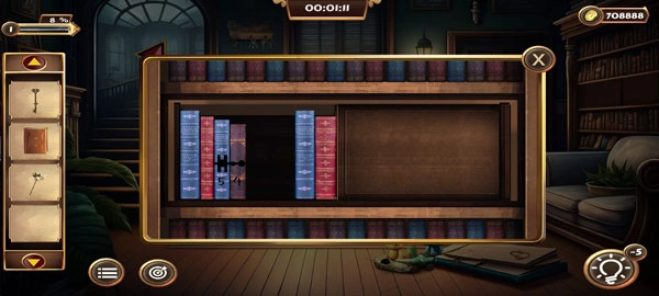 2、在客厅周围寻找并收集戳、钥匙和书籍。
