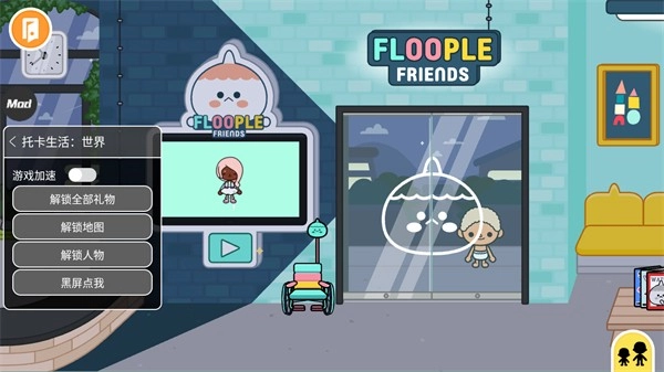6.点击左侧的MOD选项可以打开功能菜单,其中拥有游戏加速、解锁全部礼物、解锁地图、解锁人物以及黑屏解决功能,让你更加轻松的体验。