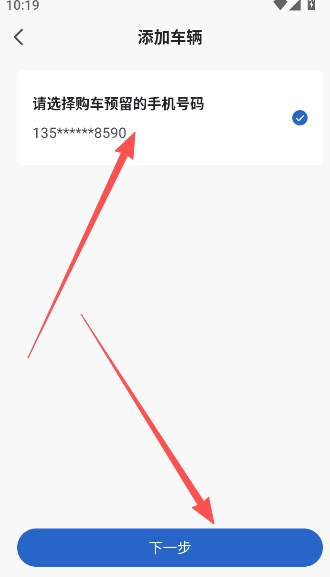6、选择预留的手机号码,输入完毕以后就可以正式绑定你所拥有的车辆啦。