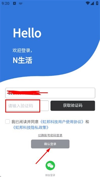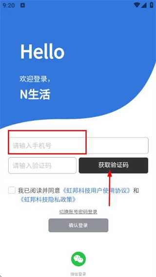 2、在登录页面填写手机号,勾选协议后,点击获取验证码。