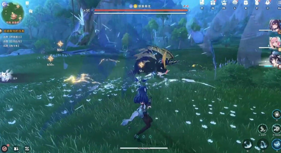 在说完打铁鬃霸主的注意事项以外,就可以直接开启挑战了,率先上场的角色是末音,末音在对boss展开艺莲见的攻击以后,铁鬃霸主会先直接向前发起猛烈冲击,这个冲击玩家只要直接闪避就行,躲避完攻击以后,末音继续进行输出,很快就会把铁鬃霸主的第一阶段给打完。
