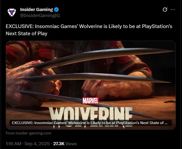 据最新报道,漫威《金刚狼》有望在下一场PlayStation State of Play活动中正式亮相,尽管官方尚未确认,多方传闻指向该展会将于9月底举办。