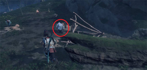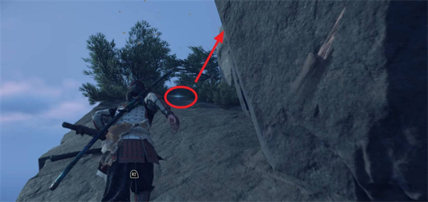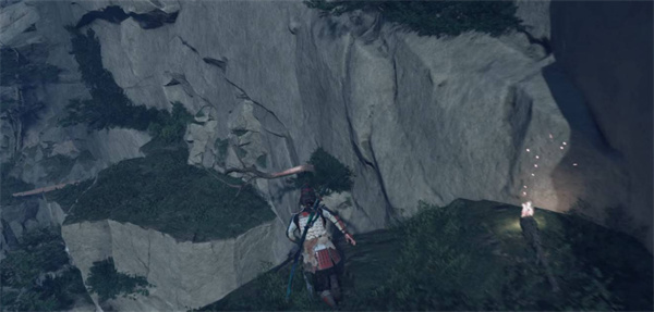 3、跟随NPC来到一个带有攀附标记的悬崖处。根据白色印记提示,从攀附点向下爬。