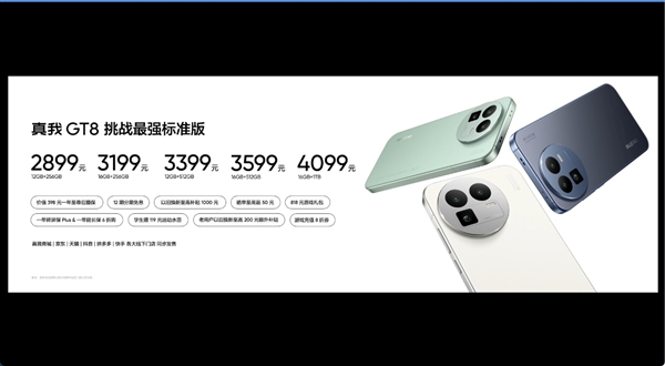 除了真我GT8Pro之外,真我GT8标准版也非常有看点,官方号称挑战最强标准版,定价2899元起。