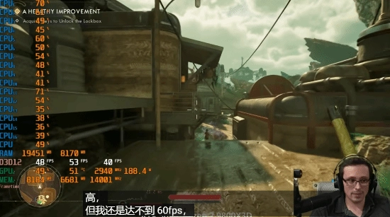 结果绝对是令人意外的,在9800X3D和RTX5090的配置当中,Daniel Owen发现,即便是这样的配置,一旦尝试挑战原生4K分辨率或开启光线追踪,帧数将在45到50间来回波动。甚至,Daniel Owen表示,在1080p,开启DLSS性能模式的设置下,一旦打开光追就无法达到60帧。