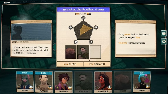 使用战略地图查看正在發生中的紧急事故,并派遣合适(或不合适)的英雄来处理这些事故。在做战术决定时,要衡量风险与报酬,要知道每个选择都可能对你的团队和城市产生长期的后果。