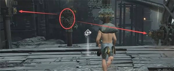 5、使用摄星拿月将中央柱子的机关绳索连接到两侧,放下吊桥,继续前进。