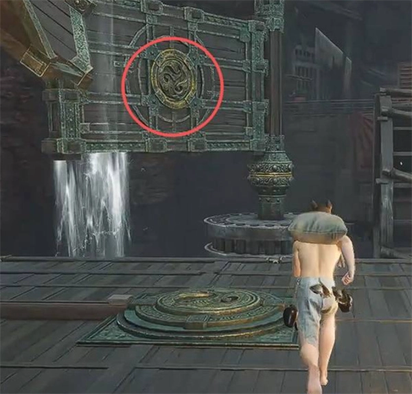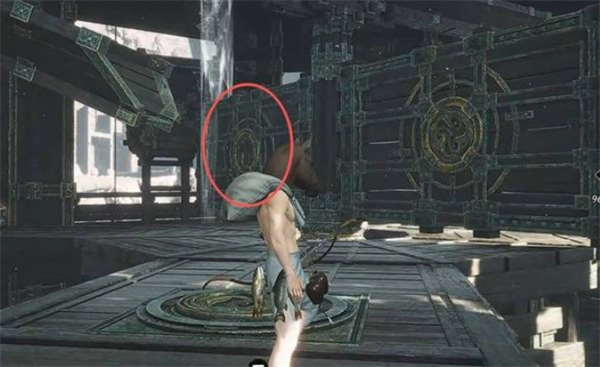 3、走水车右侧的小路绕回楼内,找到第二个发光地板机关。