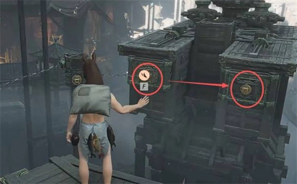 3、将石块投掷到对面木板机关上。