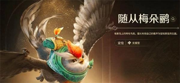 第二位高推荐的随从是梅朵鹂,它的形态是一只可爱小鸟,在游戏当中定位为支援型随从。该角色可通过声波来进行战斗效果的增益,而且还可以实现高效的状态恢复,对于团队的生存效率大大提升。并且这位随从有着比较好的治疗效果,或者是一些长时间的持续性战斗,选择这个随从会更好,不过需要提醒的是,这个随从整体的操作难度会比较高,对于新手玩家来说,适配度不强,中后期玩家可考虑选用。
