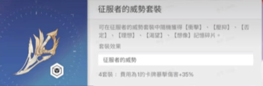 针对于暴击输出流,像梅铃、路克这样的角色适合搭配四件套征服者的威势+两件套执行者的道具。征服者的威势能够提升暴击率的加成效果,而执行者的道具却能使暴击伤害得到额外的提升效果。