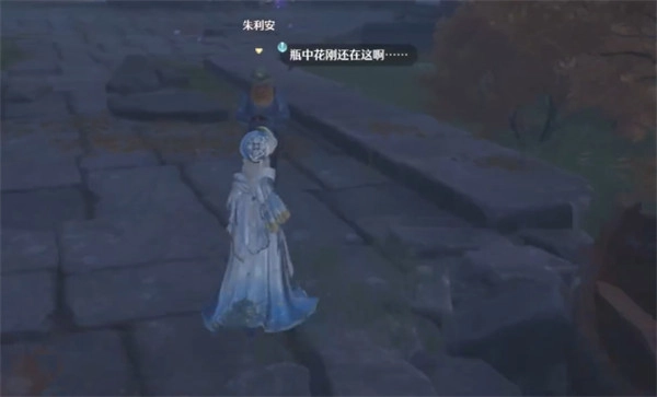 4、对话后,调整位置,使得远处的花插在花瓶中。
