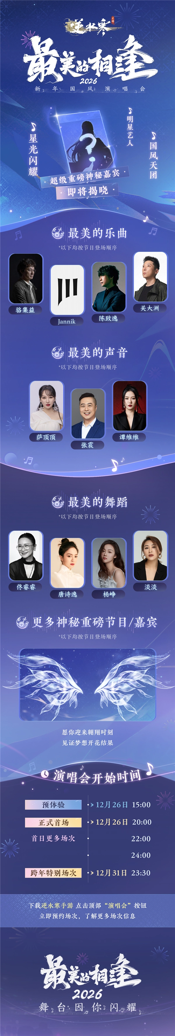 现在,《逆水寒》官方宣布,12月26日,《最美的相逢2026》将会如约而至,开发组将再次送出1亿张免费演唱会门票,诚邀全体玩家赴约。