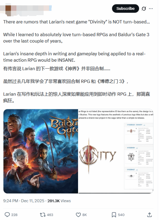 既然这次新作标题只是《神界》而非《神界:原罪3》,粉丝们开始猜测,拉瑞安是否会在玩法层面做出明显不同于《原罪》体系的尝试。