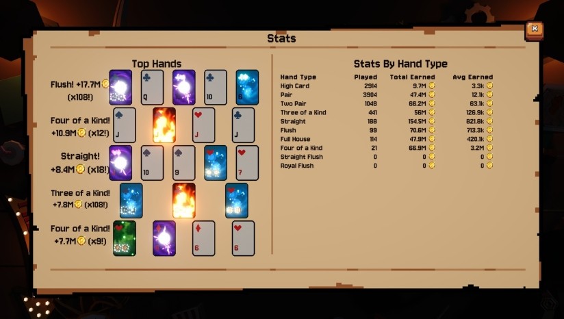 你需要通过翻牌来赚取金币,翻出来的牌型越大,获得的金币越多。当然了,翻牌不耗资源,只费时间和耐心。(这是什么放置增量小丑牌啊,喂!)