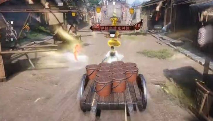 刷新出来后我们长按冲刺键,一口气冲到尽头,把路途中出现的所有粪车全部撞翻。